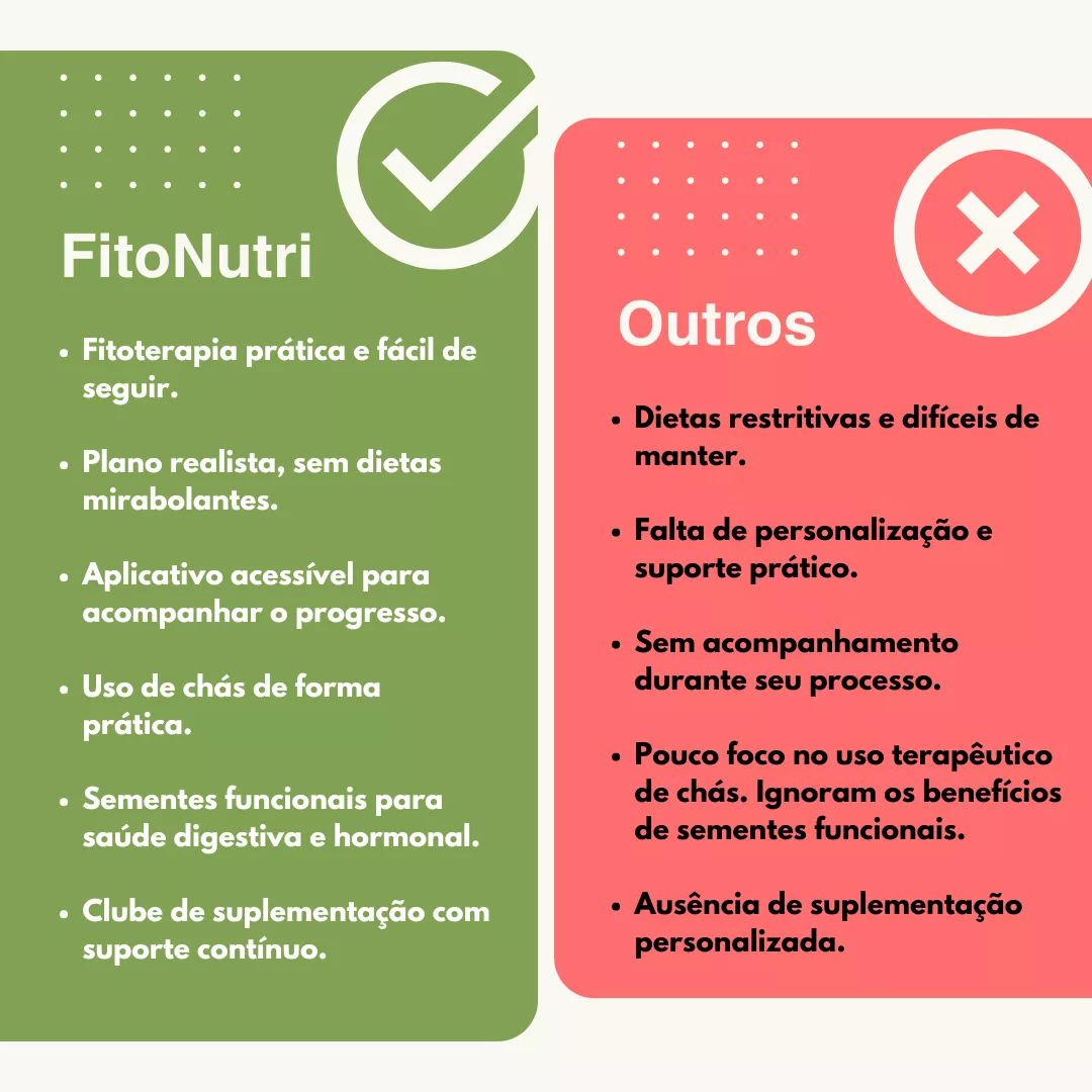 No FITONUTRI, com chás medicinais, sucos, shots matinais e sementes, você vai desinflamar, desinchar e eliminar a dor em 8 semanas e tudo de forma 100% natural, com uma metodologia simples e poderosa.