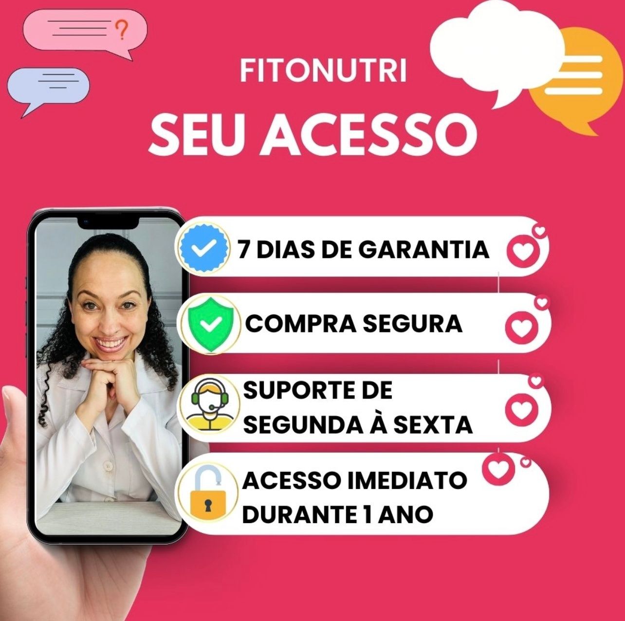Você tem 7 dias de garantia. Se decidir não se tornar um da uma AMIGA FITONUTRI dentro desse prazo, é só nos avisar que devolveremos 100% do seu dinheiro, sem burocracia.