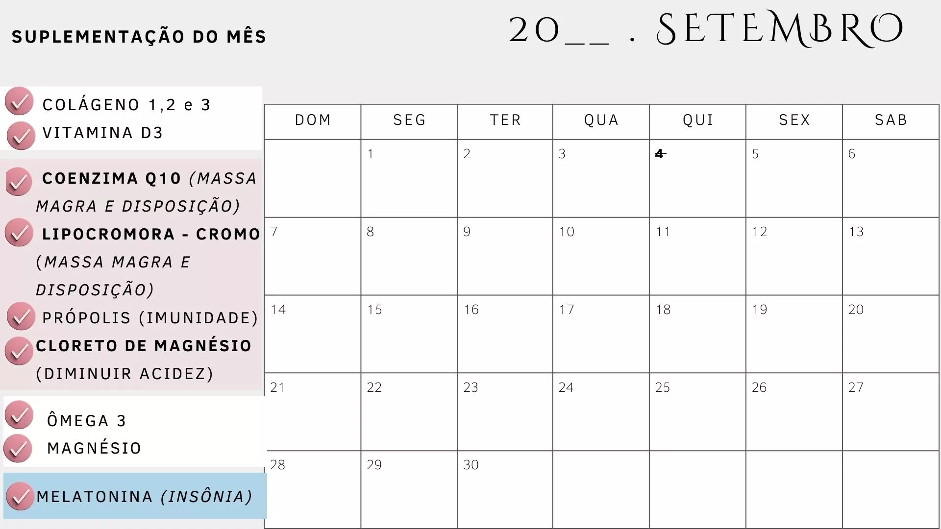 - Além disso, há um encontro mensal do CLUBE DA SUPLEMENTAÇÃO para organizar seus suplementos do mês totalizando 12 encontros para organização dos suplementos.